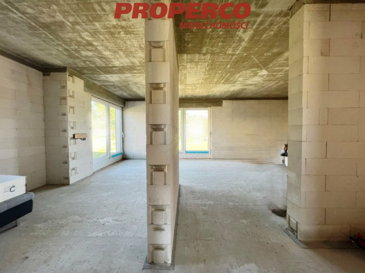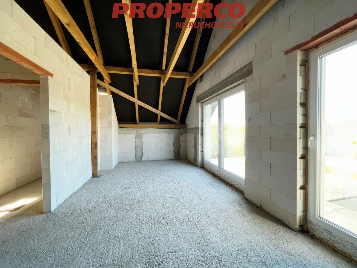 Dom wybudowany z pustaka ceramicznego, kryty blachodachówką, ocieplony styropianem i otynkowany. Planowane ogrzewanie: piec na paliwa stałe albo pompa ciepła. Nieruchomość w stanie surowym zamkniętym.